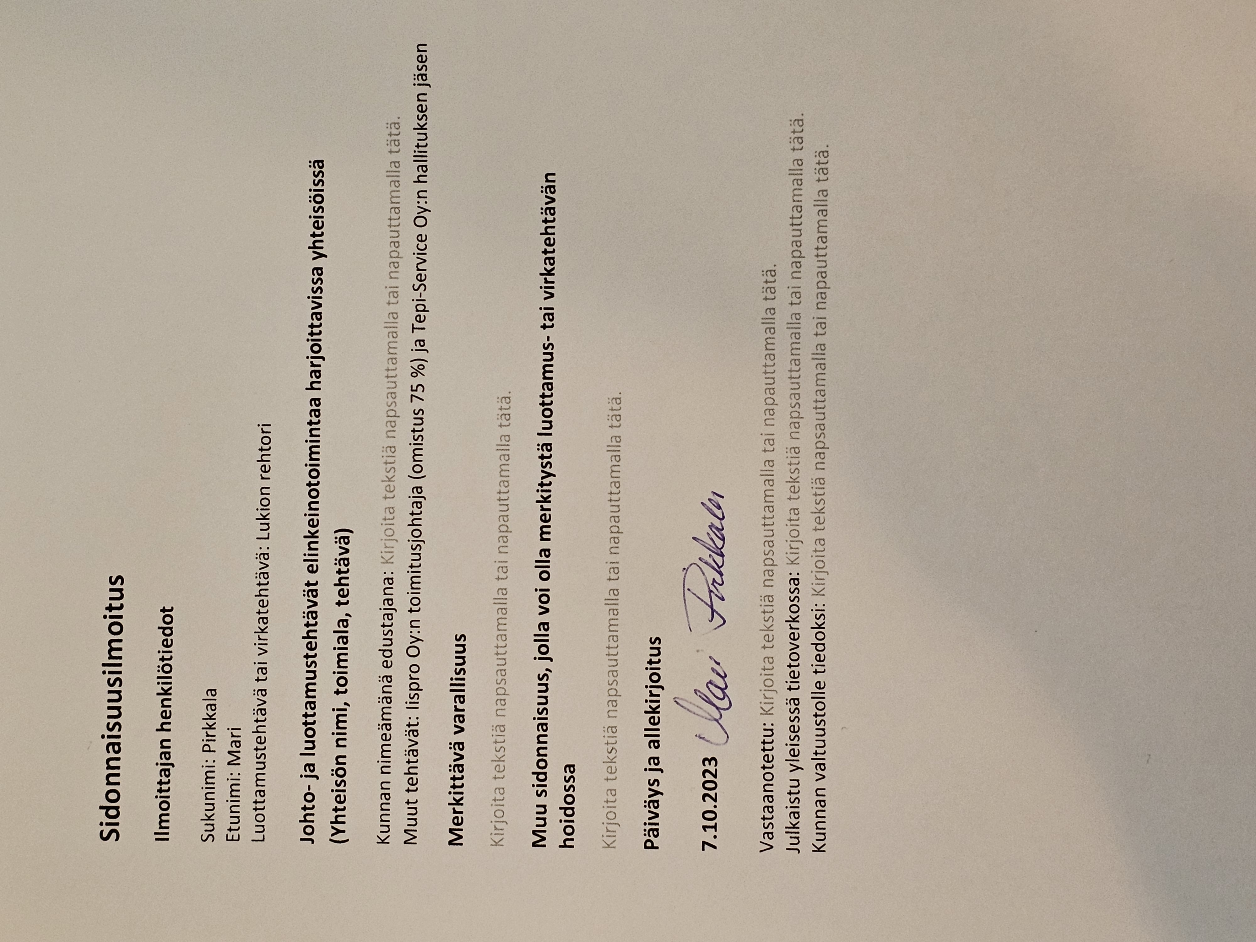 Uudet ja päivitetyt sidonnaisuusilmoitukset liitetään tähän pykälään heti kun ne on saatu.