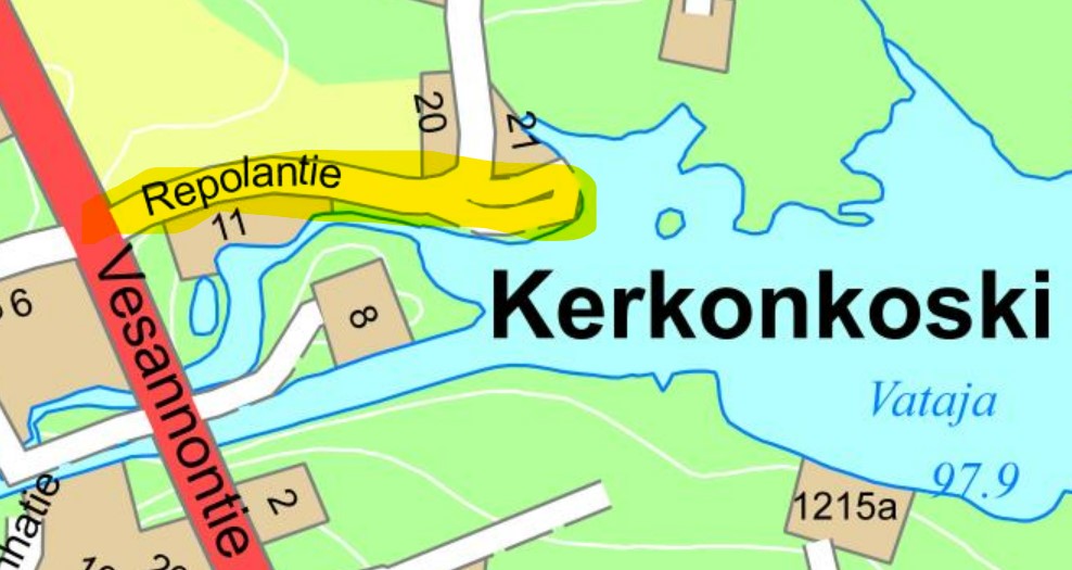 Repolan yksityistie alkaisi muutoksen jälkeen sataman kohdalta asfalttiosuuden päättymisen jälkeen.